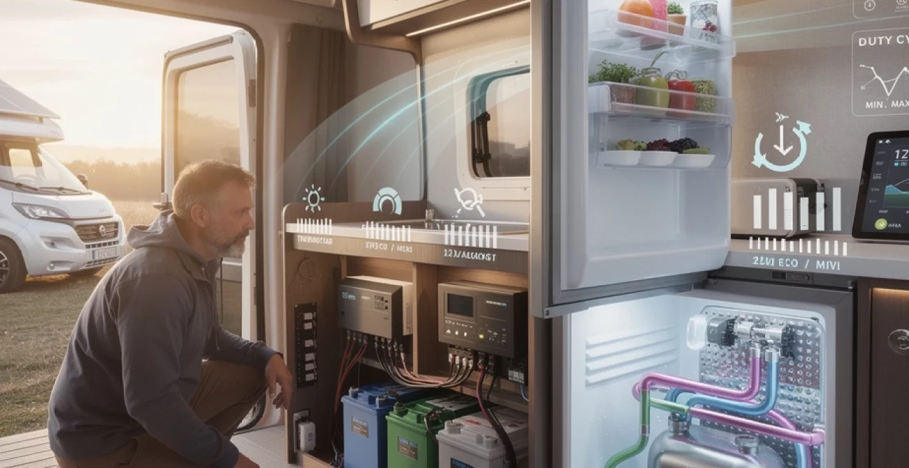 Pour éviter de subir cette phase très énergivore sur la batterie auxiliaire, une bonne pratique consiste à pré-refroidir le frigo sur 220V la veille du départ, ou au gaz pendant plusieurs heures avant de basculer sur le 12V en roulant. Ainsi, lorsque vous passez en 12V, le frigo n’est plus en phase de « démarrage à froid », mais simplement en maintien de température, ce qui soulage considérablement votre installation électrique.