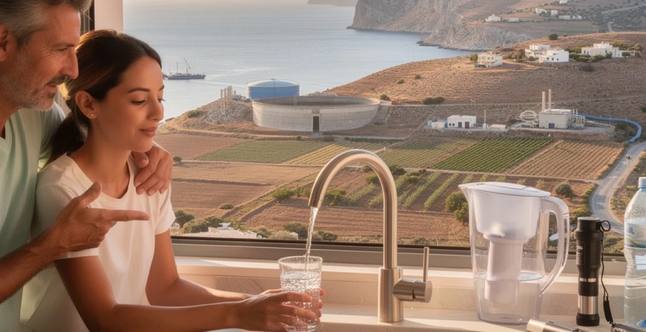 Les zones alimentées par des sources de montagne, comme certaines parties de La Canée ou de Réthymnon, bénéficient parfois d’une eau légèrement plus douce, tandis que les régions côtières ou les secteurs s’appuyant davantage sur des forages profonds présentent une dureté plus élevée. Vous remarquerez peut-être que le thé ou le café préparés avec l’eau du robinet ont un goût différent de celui auquel vous êtes habitué en France ; cela tient précisément à cette composition minérale. Si vous êtes sensible au calcaire pour des raisons de confort (peau sèche, cheveux ternes), l’utilisation d’un petit filtre domestique ou d’une carafe filtrante peut améliorer la sensation, sans que cela soit indispensable pour la santé.