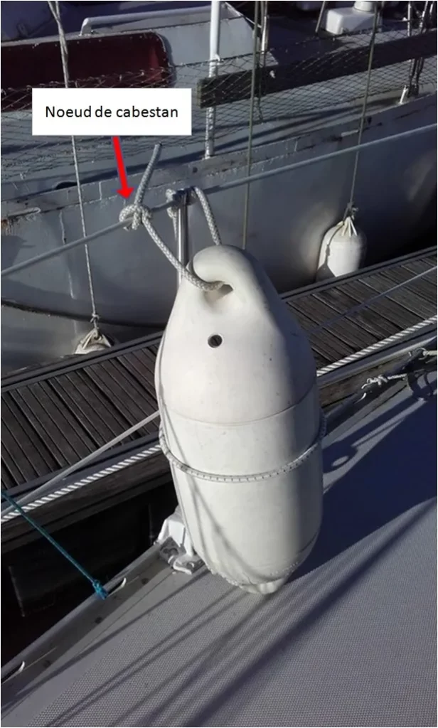 L’une des erreurs les plus fréquentes consiste à nouer le pare-battage en partie haute de la filière, à hauteur de buste, pour plus de commodité. Dans cette configuration, la défense n’est plus solidaire de la coque, mais suspendue au garde-corps. Lors d’un écrasement contre le quai, l’effort horizontal est transmis au chandelier, qui fléchit, puis à la platine de fixation, qui arrache le stratifié ou la tôle. Les filières se détendent brusquement, perdent leur fonction de garde-corps, et la réparation impliquera souvent un démontage complet de la ligne de vie sur plusieurs mètres.
