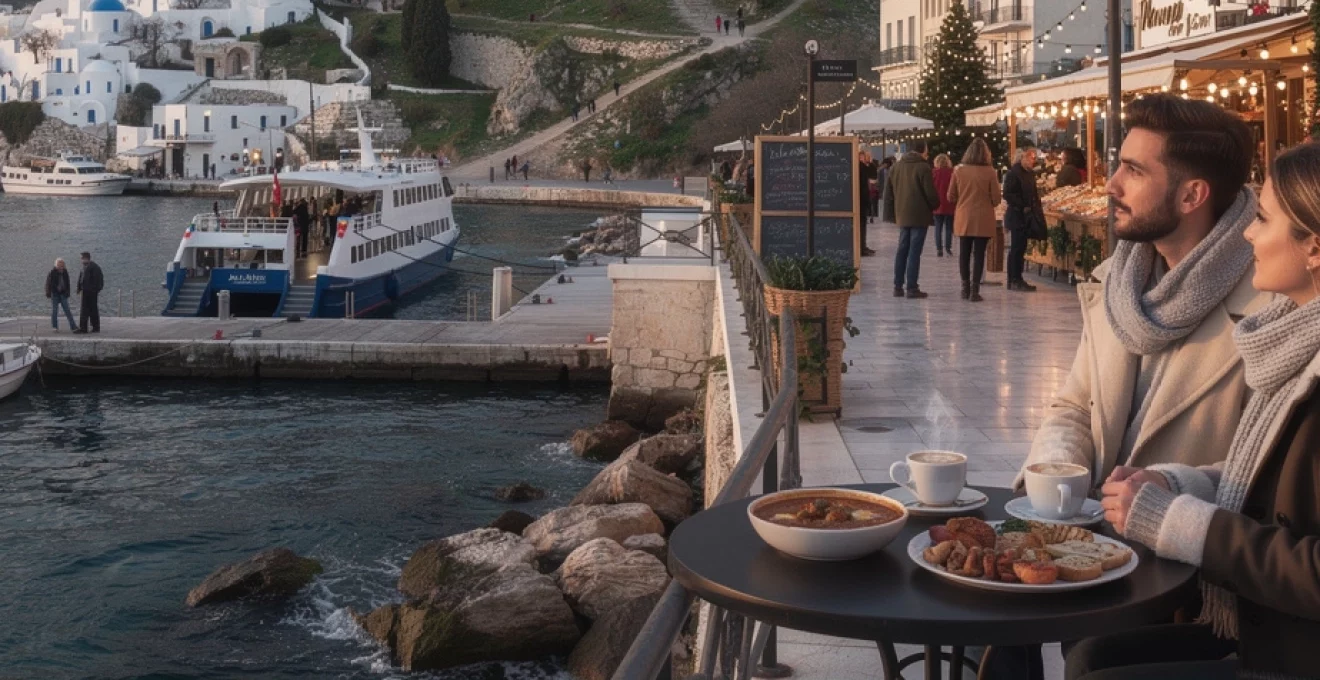Pour un voyage en Grèce en décembre incluant un « island hopping », la planification est donc cruciale. Il est recommandé de : consulter les horaires actualisés des compagnies quelques semaines avant le départ, éviter les enchaînements trop serrés entre ferry et vol, et prévoir un jour tampon en cas d’annulation due aux conditions météorologiques. En contrepartie, les prix des billets de ferry sont généralement plus bas qu’en juillet-août, et l’expérience à bord est plus tranquille, loin de la foule estivale.